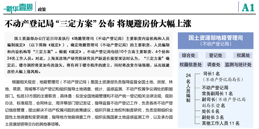 不動(dòng)產(chǎn)登記局“三定方案”公布