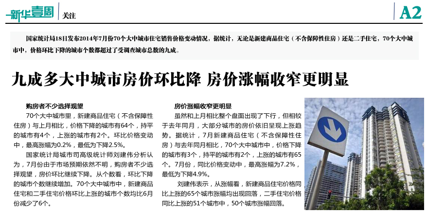九成多大中城市房價(jià)環(huán)比降