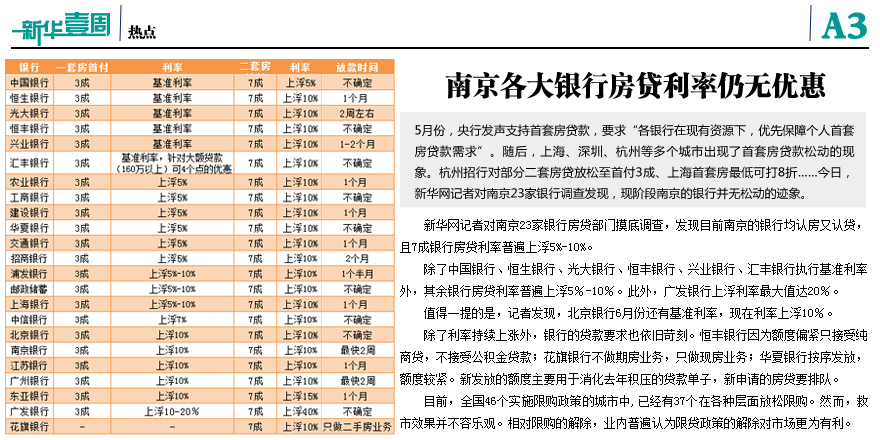 南京各大銀行房貸利率仍無優(yōu)惠
