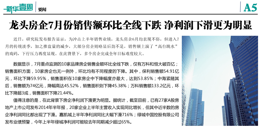 龍頭房企7月份銷售額環(huán)比全線下跌