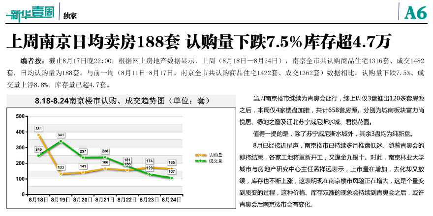 上周南京日均賣房188套