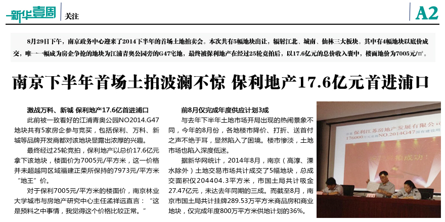 南京下半年首場土拍波瀾不驚