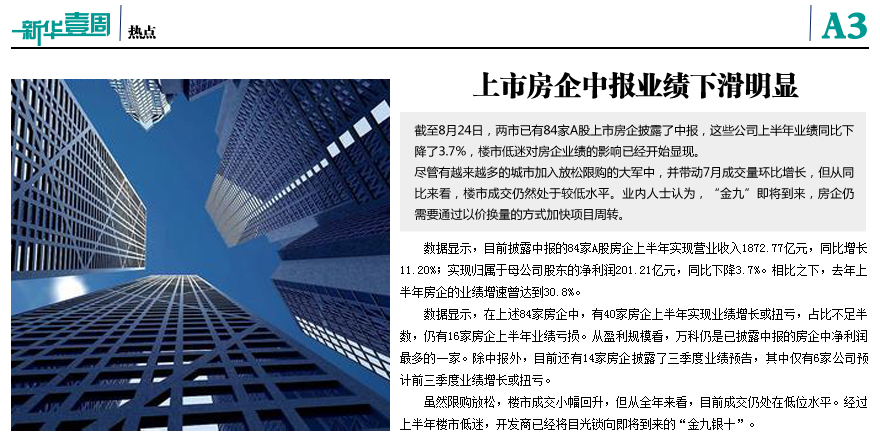 上市房企中報業(yè)績下滑明顯