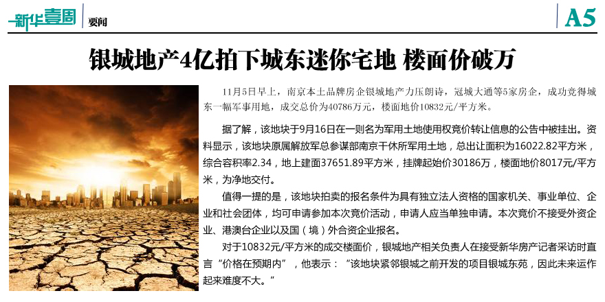 銀城地產(chǎn)4億拍下城東迷你宅地
