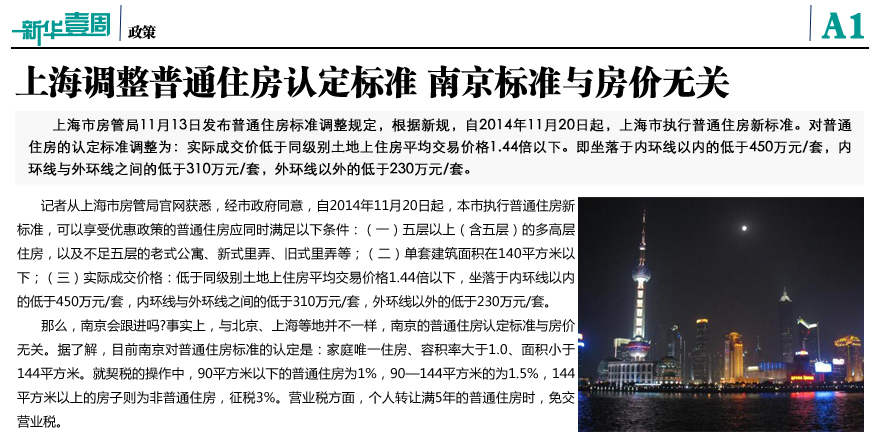 上海調(diào)整普通住房認(rèn)定標(biāo)準(zhǔn)