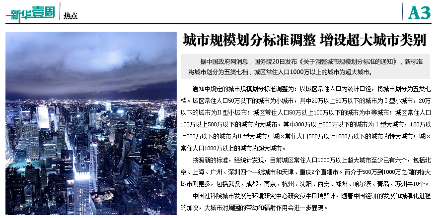 城市規(guī)模劃分標(biāo)準(zhǔn)調(diào)整