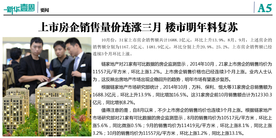 上市房企銷(xiāo)售量?jī)r(jià)連漲三月