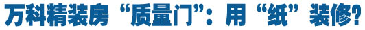 “毒地板”風(fēng)波還沒有平息,萬科的門前又圍滿了砸場子的業(yè)主。這次的罪魁禍?zhǔn)走€是精裝修。深圳萬科第五園六期當(dāng)初宣稱“每平方米送3000元精裝修”,最近出現(xiàn)了大面積發(fā)霉、墻面涂料脫落等問題,拆開裝修材料一看:衣柜、鞋柜竟然都是“紙”做的。400萬元的真金白銀卻換來開發(fā)商的粗制濫造,業(yè)主們怎么能咽下這口氣。 …[詳細(xì)]