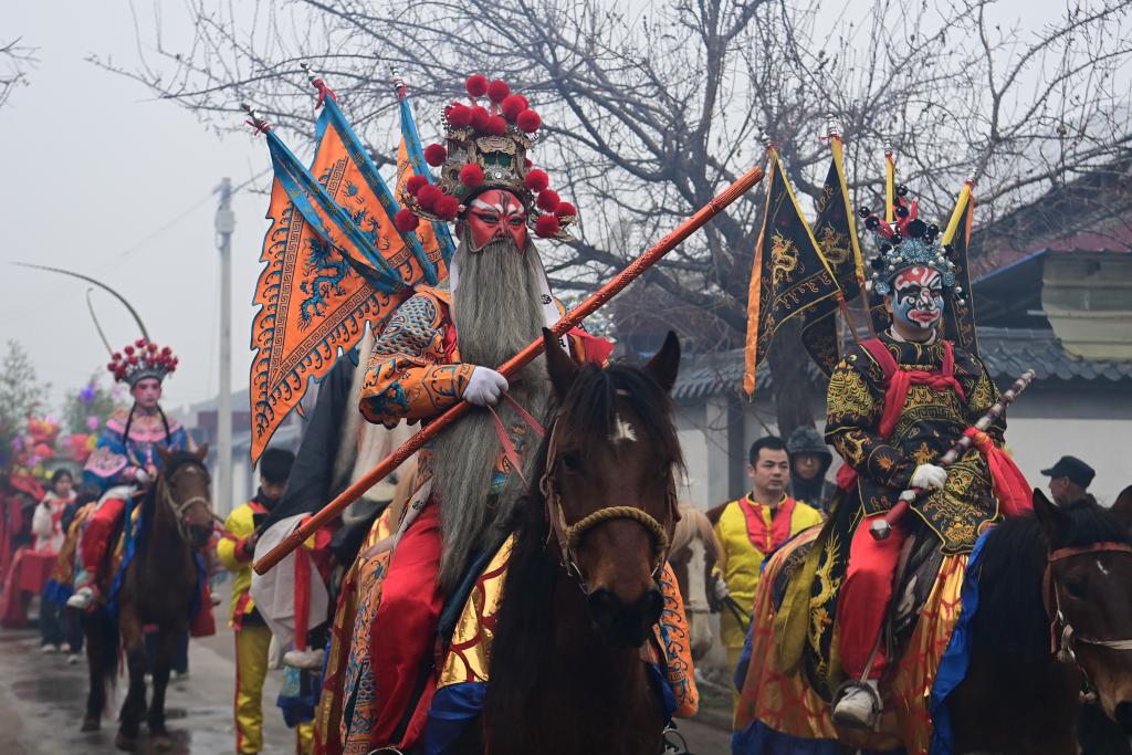 哒、哒、哒……不是锣鼓先响,不是人声先沸,是马蹄声唤醒了黄土地。27匹骏马驮着“关公”“秦琼”等行过村口,道路两旁站满翘首以盼的村民。