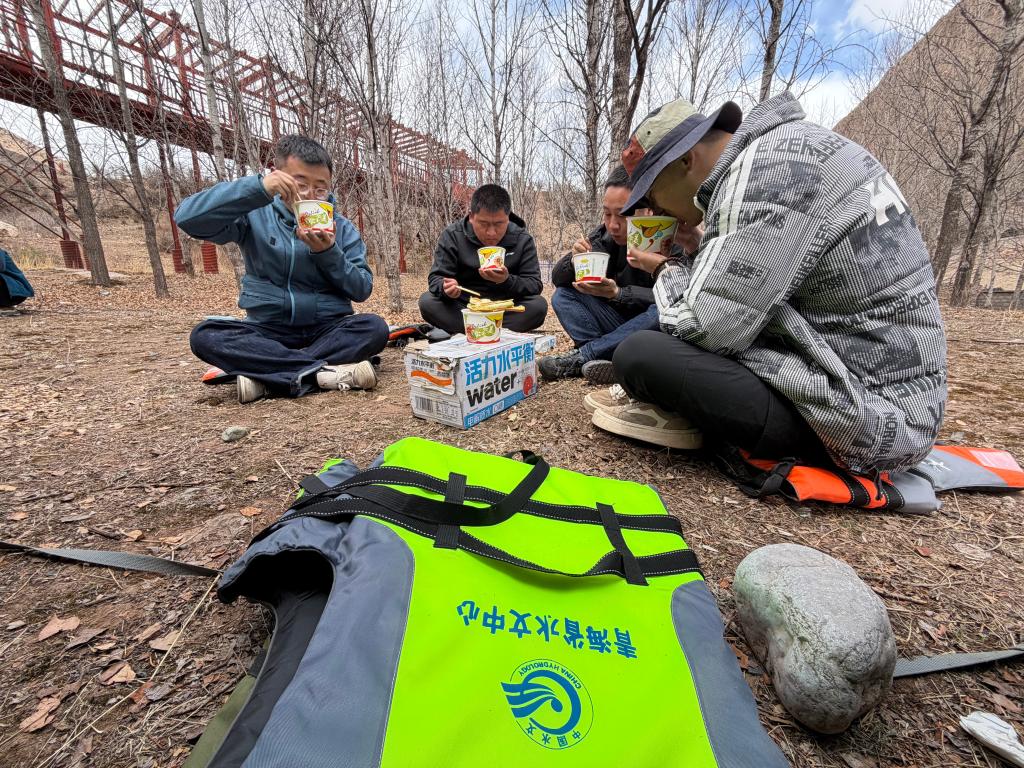 青海省玉树水文水资源测报分中心职工开展测量期间轮换吃饭。新华社发