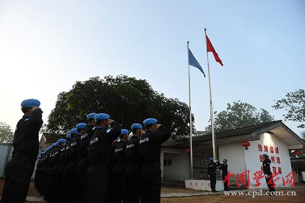 ????升旗儀式結(jié)束后,隊員們紛紛表示,在遠離祖國親人的異國他鄉(xiāng)執(zhí)勤并不孤單,看到迎風(fēng)招展的五星紅旗,心底里就有一種溫暖在緩緩流淌,雖與祖國親人遠隔萬里,仿佛也是近在咫尺,作為一名光榮的中國維和警察,倍感驕傲自豪!
