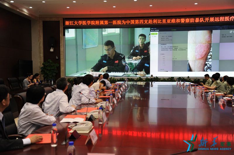 ????由中國第四支駐利比里亞維和警察防暴隊(duì)、浙江邊防總隊(duì)和浙江大學(xué)醫(yī)學(xué)院附屬第一醫(yī)院共同發(fā)起的“警民遠(yuǎn)程醫(yī)療協(xié)作”日前啟動(dòng)。6位醫(yī)療專家通過遠(yuǎn)程視頻系統(tǒng),為遠(yuǎn)在利比里亞的患病隊(duì)員進(jìn)行會(huì)診。