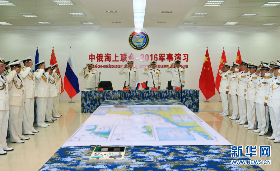 ????9月13日,中俄“海上聯(lián)合—2016”軍事演習(xí)開幕式在演習(xí)導(dǎo)演部舉行,中方總導(dǎo)演、中國海軍副司令員王海和俄方總導(dǎo)演、俄羅斯海軍副司令費多堅科夫共同宣布演習(xí)開始。