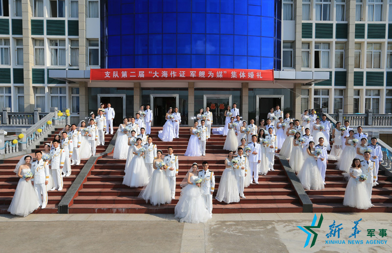 ????新華社杭州9月24日電(林健、方思航、史奎吉)9月24日,農(nóng)歷八月廿四,浙江舟山某軍港處處洋溢著喜慶,東海艦隊某驅逐艦支隊在這里為35對新人,舉行集體婚禮。這是這個支隊舉辦的第二屆“大海作證·軍艦為媒”主題集體婚禮。