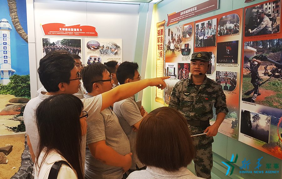 網(wǎng)絡(luò)名人以及媒體代表參觀連隊榮譽室。李朋芳 攝