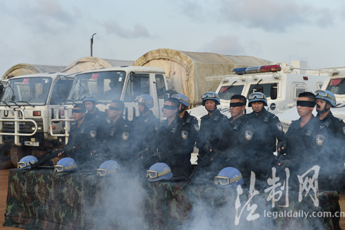 ????當(dāng)日,中國第四支駐利比里亞維和警察防暴隊從嚴(yán)從難從實戰(zhàn)出發(fā),開展蒙眼分解槍支、三人攀登、擒拿格斗等課目訓(xùn)練,將訓(xùn)練場與“戰(zhàn)場”無縫對接,錘煉隊員在超強度、高難度實戰(zhàn)訓(xùn)練環(huán)境下快速反應(yīng)和應(yīng)急處置能力,全面檢驗防暴隊的體能、技能、智能綜合能力,提升防暴隊實戰(zhàn)化訓(xùn)練水平。(李金良)