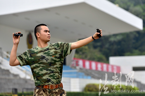 ????練兵場上空被投擲的防暴彈劃出一條條優(yōu)美的弧線?!鞍谁h(huán)、九環(huán)、十環(huán)……。”報(bào)靶員響亮的聲音響徹練兵場。班長蔡錦彬投擲的防暴彈仿佛對(duì)靶心有向心力,一環(huán)比一環(huán)高;其他官兵也不甘示弱,剛剛創(chuàng)下的好成績不斷被刷新,戰(zhàn)士廖國勇猶如賽場上的一匹黑馬,憑著過硬的實(shí)力,一路過關(guān)斬將,奪得第一。(林宇華)
