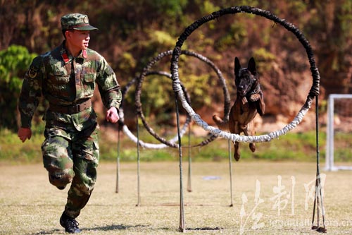 探訪警犬春訓(xùn):沖火圈 飛斷橋