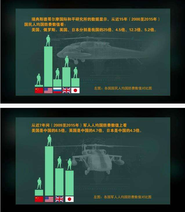 【中國(guó)軍人人均數(shù)額為41.77萬(wàn)元人民幣,約6.29萬(wàn)美元】是美國(guó)的13.58%,日本的34.4%,英國(guó)的22.98%,法國(guó)的22.8%,德國(guó)的14.3%