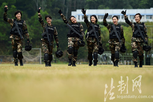 ????“干媽,我太想你了!”“隊(duì)長,我要給你個擁抱!”“我也要來個熊抱!”在深圳銀湖山下的邊防警營,記者現(xiàn)場看到,陳偉紅所到之處皆有掌聲,戰(zhàn)士們熱情的上前打招呼、話家常、送祝福。特別是在訓(xùn)練場,一支六人組成的“霸王花”小分隊(duì)格外搶眼,手握九五式鋼槍,腳穿新式防爆靴,個個全副武裝、英姿颯爽,走起路來虎虎生風(fēng);細(xì)一掂量,僅身上的防彈背心、頭盔、鋼槍就有三十多斤重,均為目前的先進(jìn)裝備。看到陳隊(duì)長到來,霸王花們又變成了小姑娘,紛紛涌向老大姐,拉家常、話思念?!拔覀兌际谴蠼愕耐降?!”女中尉小劉說。作戰(zhàn)訓(xùn)練科賴紹坤科長介紹,該支隊(duì)作為全國公安邊防部隊(duì)的機(jī)動力量,常年擔(dān)負(fù)多項(xiàng)緝私、緝毒、救援、處突任務(wù);而該支隊(duì)平日里,這些女干部主要分布在各機(jī)關(guān)業(yè)務(wù)科室,但是只要任務(wù)需要,她們都將奔赴第一現(xiàn)場;所以平時的訓(xùn)練同樣嚴(yán)格;“女干部和男干部一樣,無論在哪個崗位,每個季度都會組織進(jìn)行體能、技能考核!”(廖鍵)