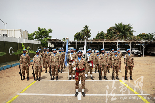????此次“巴基斯坦國慶日”慶典活動邀請了駐利維和軍警,聯(lián)合國駐利比里亞特派團(聯(lián)利團)各級官員,以及利比里亞國家部隊、警察代表等100余人參加。慶典活動由聯(lián)利團維和部隊司令賽利胡·尤巴致辭,先后進行了閱兵、升旗、贈送紀念品等活動。