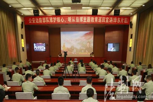 ????5月24日至25日,邊防部隊(duì)“維護(hù)核心、聽(tīng)從指揮”主題教育宣講團(tuán)(華東片區(qū)),到江蘇邊防總隊(duì)開(kāi)展巡回宣講,來(lái)自公安邊防部隊(duì)高度專(zhuān)科學(xué)校政治法律教研室副教授李中一和士官學(xué)?;A(chǔ)部管理政工教研室講師孫繼寧,分別為官兵進(jìn)行了精彩的授課。上海、江蘇、山東、安徽、江西、浙江、福建邊防總隊(duì)等華東教育協(xié)作區(qū)7個(gè)成員單位通過(guò)視頻組織了收聽(tīng)收看。