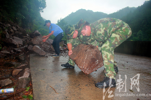 ????原標題:進鎮(zhèn)盤山要道落石中斷 福建鑒江邊防官兵放棄軍人節(jié)日冒雨搶通