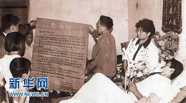 1993年8月,徐洪剛在筠連縣醫(yī)院治療10天,前來送錦旗、鮮花、食品、慰問信的人數超過5000人次(資料照片)。新華社發(fā)