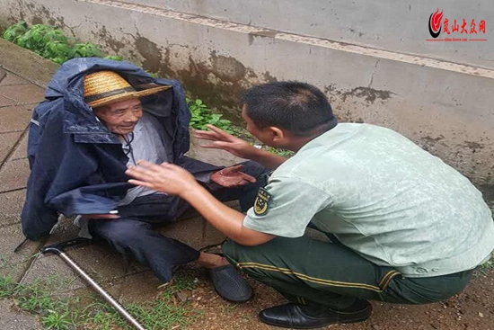 ????8月2日16時許,該所官兵在轄區(qū)官草汪村走訪時,發(fā)現(xiàn)在村馬路中間坐著一名陌生的老人,遂上前詢問,由于老人年齡較大,說話不夠清晰,只得知老人姓劉,今年96歲,再詳細詢問其家庭住址以及親屬姓名就說不清了。隨后,官兵為老人拍照,通過地方黨委微信工作群轉(zhuǎn)發(fā)至各個村委辨認老人照片,經(jīng)過長達近2小時的聯(lián)系等待,終于聯(lián)系上了老人親屬。