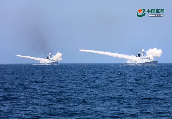 8月7日,海軍在黃海、渤海相關(guān)??沼蚪M織實(shí)兵實(shí)彈對抗演習(xí),最大限度檢驗(yàn)體系作戰(zhàn)能力、戰(zhàn)法訓(xùn)法、武器裝備效能,共實(shí)射各型導(dǎo)彈數(shù)十枚。李唐 攝(圖片來源:中國軍網(wǎng))
