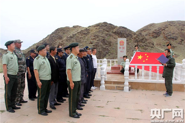 ????近日,烏拉斯臺(tái)邊檢站與口岸聯(lián)檢單位、“民族團(tuán)結(jié)一家親”親戚代表、自治區(qū)駐疆內(nèi)口岸工作組在中蒙163界碑共同舉行“軍旗映國(guó)門忠誠(chéng)鑄軍魂”發(fā)聲亮劍活動(dòng),全面貫徹落實(shí)新疆維護(hù)社會(huì)平穩(wěn)和長(zhǎng)治久安總目標(biāo),打牢維護(hù)民族團(tuán)結(jié)思想基礎(chǔ),進(jìn)一步增強(qiáng)廣大官兵的愛國(guó)主義情懷,展示執(zhí)勤官兵敢于發(fā)聲、勇于亮劍的堅(jiān)定黨性及堅(jiān)強(qiáng)擔(dān)當(dāng),表明堅(jiān)決聽黨指揮、堅(jiān)決維護(hù)社會(huì)大局安定的理想信念。官兵們一致表示,將始終以更加飽滿的工作熱情投入到邊檢查緝工作中,認(rèn)真履職,敢于擔(dān)當(dāng),筑牢邊境防控的銅墻鐵壁。
