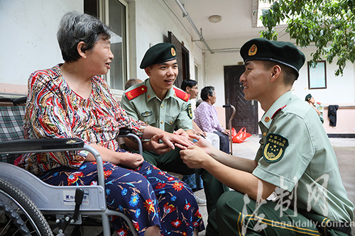 ????8月29日下午,江蘇邊防總隊(duì)連云港邊檢站面臨復(fù)退的戰(zhàn)士最后一次穿著軍裝走進(jìn)駐地敬老院,看望他們“認(rèn)親”的老人,送上他們退伍前的一聲祝福,并將“認(rèn)親”的老人交到留隊(duì)的戰(zhàn)友手中,將這份愛(ài)心傳遞下去。據(jù)悉,這個(gè)站“認(rèn)親”的傳統(tǒng)已經(jīng)延續(xù)了27年,每名官兵都有“認(rèn)親”的孤寡老人,他們和老人之間建立了深厚的感情。(錢逸帆 王鈺)