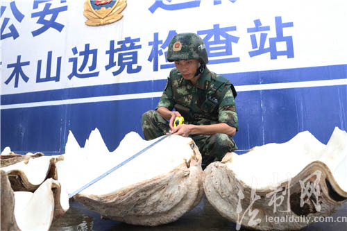 防城港邊防查獲國家一級保護(hù)動物硨磲標(biāo)本3只 總重218公斤