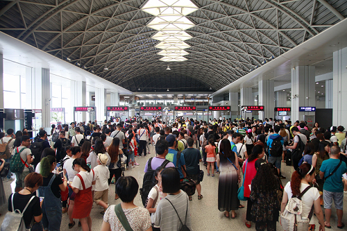 圖為出入境大廳現(xiàn)場