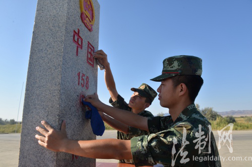 圖為老兵含情脈脈擦拭日日夜夜守護(hù)的界碑