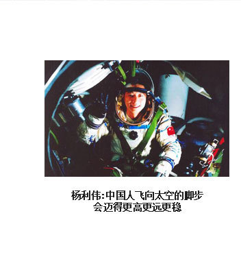 ??? 為了人類的和平與進(jìn)步,中國人來到了太空。2003年10月15日,我搭乘神舟五號(hào)飛船,在太空飛行14圈,歷時(shí)21小時(shí)23分,完成了中國首次載人航天飛行。雖然是獨(dú)自在太空飛行,但一想到億萬祖國人民翹首以待,我覺得不是一個(gè)人在飛。于是我拿起太空筆,在工作日志的背面寫上了這樣一句話:“為了人類的和平與進(jìn)步,中國人來到了太空”,并在艙內(nèi)鏡頭前向祖國人民、世界人民展示?!盀榱巳祟惖暮推脚c進(jìn)步”,是中國發(fā)展載人航天事業(yè)的初衷,“中國人來到了太空”既描述了一個(gè)歷史時(shí)刻,也表達(dá)了我為祖國航天事業(yè)感到無比自豪的心情。?