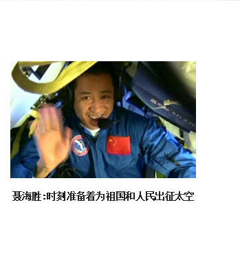 ??? 時(shí)刻準(zhǔn)備著,將祖國的榮耀一次次寫滿太空。在我加入航天員大隊(duì)后,有2件事深深地烙在我的腦海中。一是,一位老華僑在神舟五號(hào)任務(wù)成功后,含淚而說的“你們航天員飛得有多高,我們海外游子的頭就能昂多高”。二是,我們面對國旗許下的誓言,“為祖國的載人航天事業(yè)奮斗終身”。我始終以嚴(yán)慎細(xì)實(shí)的精神,以時(shí)不我待的狀態(tài),腳踏實(shí)地、努力學(xué)習(xí)、刻苦訓(xùn)練,以實(shí)際行動(dòng)踐行諾言,用一生的執(zhí)著與追求,時(shí)刻準(zhǔn)備著,將祖國的榮耀一次次寫滿太空!?