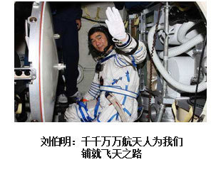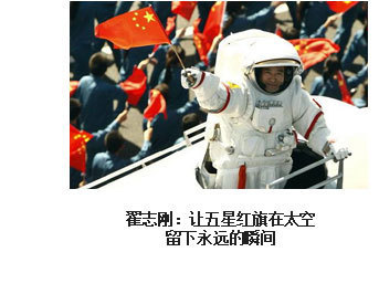 ??? 漫步太空、紅旗永駐。2008年9月27日16時(shí)43分,浩渺太空,敞懷相迎,我在戰(zhàn)友伯明、海鵬的協(xié)助和支持下,打開軌道艙艙門,邁出了中國人在茫茫太空中的第一步。在19分35秒的艙外活動(dòng)中,我隨飛船一起飛過了9165公里,成為中國“飛得最高、走得最快”的人。然而,成功并不代表成熟,一切仍要從零開始。后續(xù)的空間站任務(wù)、登陸月球……路還很長,挑戰(zhàn)還很多,需要付出和努力的也還很多。對于我來說,沒有停歇的腳步,只有奮進(jìn)的號(hào)角。