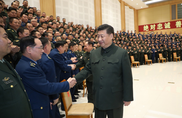 ??? 2月12日,中共中央總書記、國家主席、中央軍委主席習近平在成都親切接見駐蓉部隊師以上領(lǐng)導(dǎo)干部和建制團單位主官。新華社記者李剛攝
