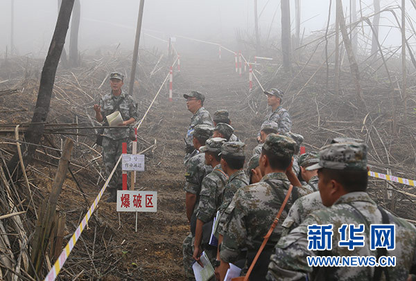 集訓(xùn)教員在中越邊境麻栗坡某雷場為參訓(xùn)官兵授課教學(xué)(9月1日攝)。新華社發(fā)(張輝 攝)