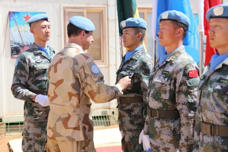 ????新華社馬里加奧3月8日電(賈春明、劉曉帥)當(dāng)?shù)貢r(shí)間7日上午,中國(guó)第6批赴馬里維和部隊(duì)授勛儀式在位于馬里加奧地區(qū)的中國(guó)維和部隊(duì)營(yíng)區(qū)舉行,395名維和官兵全部被授予聯(lián)合國(guó)和平榮譽(yù)勛章。