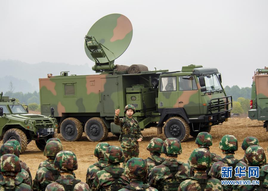 俞細(xì)文(左二)在野外訓(xùn)練場(chǎng)迅速架設(shè)通信臺(tái)站(12月11日攝)。新華社發(fā)(劉明松 攝)