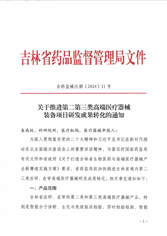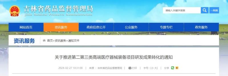 2月27日,吉林省藥監(jiān)局發(fā)布《關(guān)于推進(jìn)第二第三類高端醫(yī)療器械裝備項目研發(fā)成果轉(zhuǎn)化的通知》(以下簡稱《通知》),擬加快推進(jìn)吉林省境內(nèi)第二三類在研、在審高端醫(yī)療器械研發(fā)成果轉(zhuǎn)化。