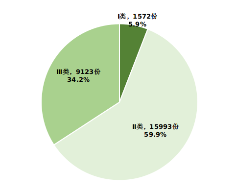 ? 附圖:涉及北京市醫(yī)療器械注冊人、備案人、進(jìn)口醫(yī)療器械代理人的報(bào)告按器械管理類別統(tǒng)計(jì)情況