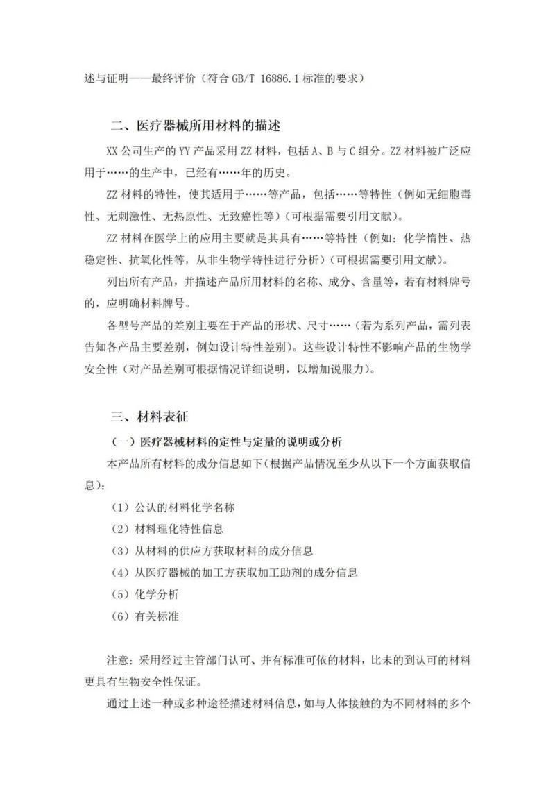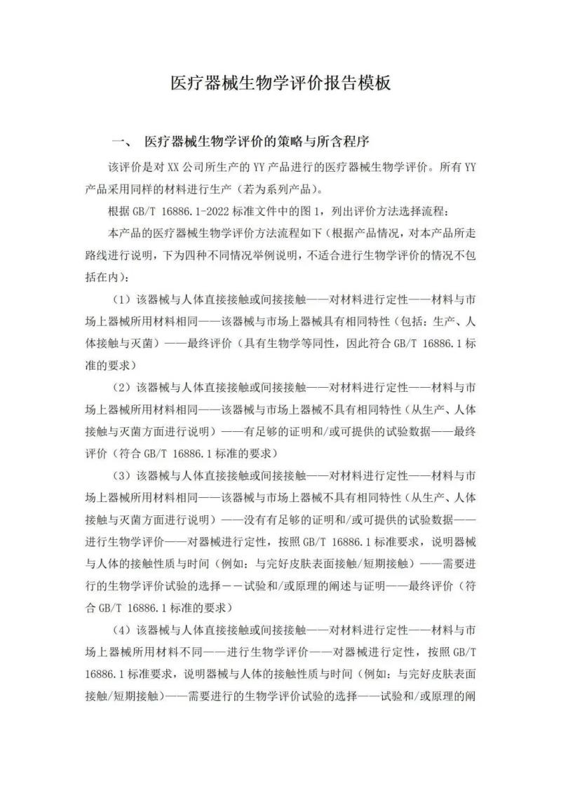 撰寫生物學評價報告時,可從醫(yī)療器械生物學評價的策略與所含程序、醫(yī)療器械所用材料的描述、材料表征、選擇或放棄生物學試驗的理由與論證、已有數(shù)據(jù)與試驗結(jié)果的匯總、完成生物學評價所需的其他數(shù)據(jù)、總結(jié)七個方面分別進行闡述,我們將報告模板部分內(nèi)容展示如下: