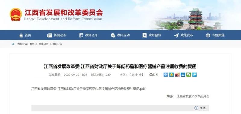 近日,江西省發(fā)展和改革委員會(huì)官網(wǎng)發(fā)布《江西省發(fā)展改革委江西省財(cái)政廳關(guān)于降低藥品和醫(yī)療器械產(chǎn)品注冊(cè)收費(fèi)的復(fù)函》,其中指出,藥品、醫(yī)療器械產(chǎn)品注冊(cè)收費(fèi)標(biāo)準(zhǔn)按現(xiàn)行規(guī)定標(biāo)準(zhǔn)的70%收取,調(diào)整后具體標(biāo)準(zhǔn)如下: