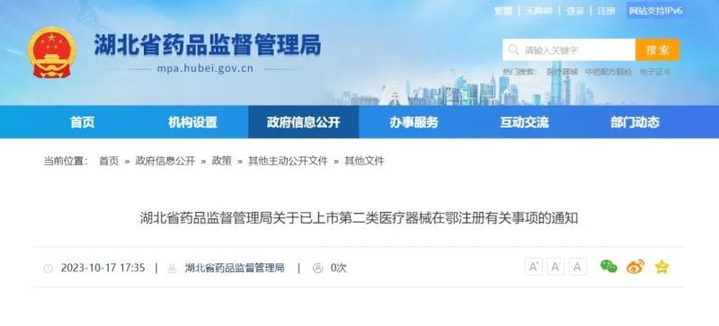 10月17日,湖北省藥監(jiān)局官網(wǎng)發(fā)布《關(guān)于已上市第二類醫(yī)療器械在鄂注冊有關(guān)事項(xiàng)的通知》,具體內(nèi)容如下: