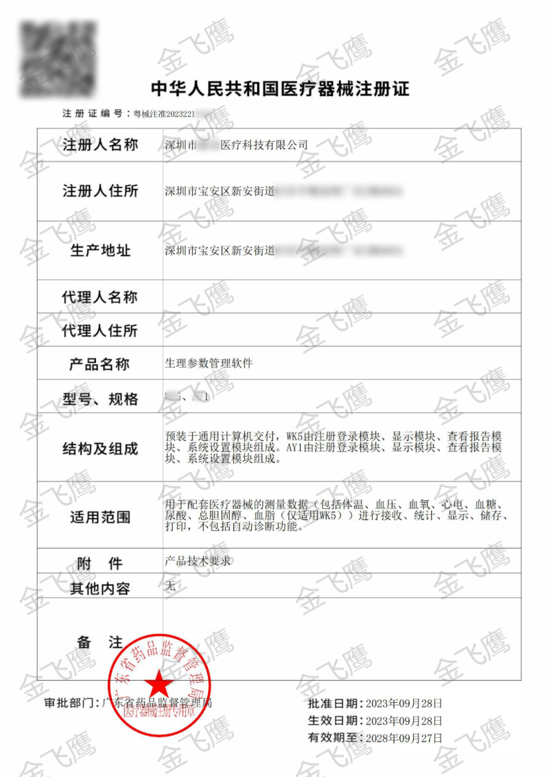 近年來(lái),在金飛鷹的日常輔導(dǎo)過(guò)程中我們也明顯感覺(jué)到,咨詢(xún)醫(yī)用軟件注冊(cè)的客戶(hù)越來(lái)越多了。這不,近日,金飛鷹輔導(dǎo)的深圳一家企業(yè)成功取得了生理參數(shù)管理軟件(分類(lèi)編碼:21-03)的注冊(cè)證,如下圖?