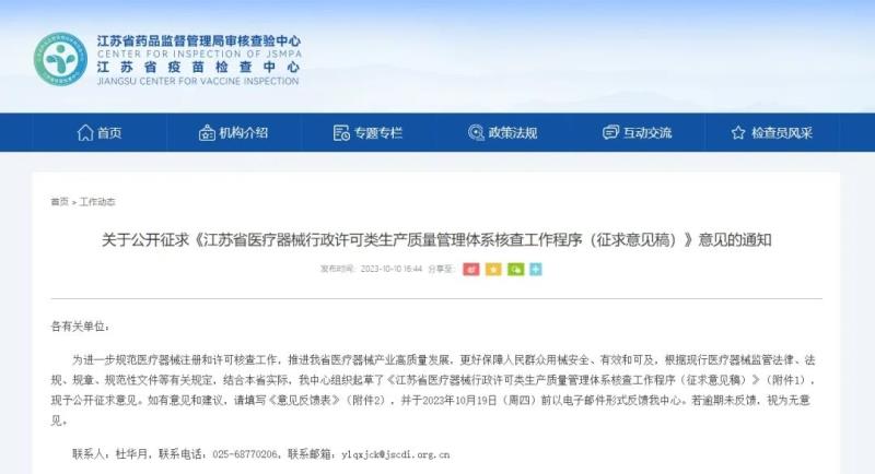 近日,江蘇省藥監(jiān)局審核查驗中心發(fā)布《江蘇省醫(yī)療器械行政許可類生產質量管理體系核查工作程序(征求意見稿)》(以下簡稱《工作程序》),并向社會公開征求意見。