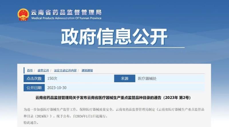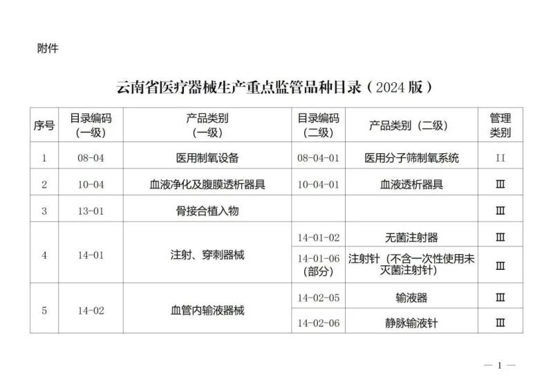 10月30日,云南省藥監(jiān)局官網(wǎng)公布《云南省醫(yī)療器械生產(chǎn)重點(diǎn)監(jiān)管品種目錄(2024版)》(以下簡(jiǎn)稱《目錄》),其中包括醫(yī)用分子篩制氧系統(tǒng)、創(chuàng)面敷貼等7種Ⅱ類產(chǎn)品及血液透析器具、無菌注射器等9種Ⅲ類產(chǎn)品?!赌夸洝?strong style="margin: 0px; padding: 0px; outline: 0px; max-width: 100%; box-sizing: border-box !important; overflow-wrap: break-word !important; visibility: visible;">自2024年1月1日起施行,以下為具體清單: